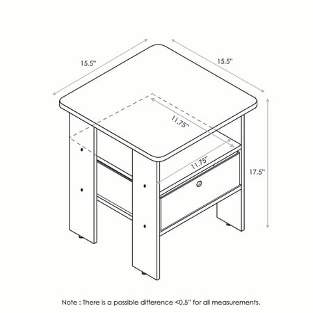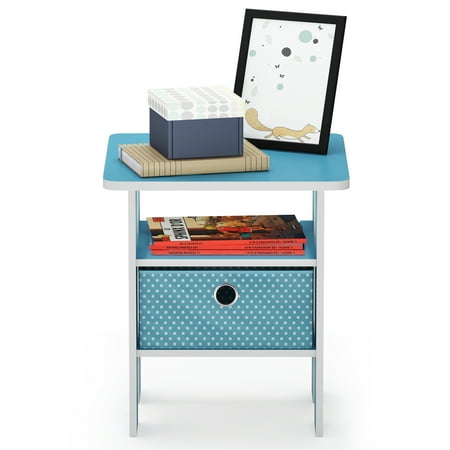 Create the perfect living room space with this Furinno end table with a bin. This end table will sit perfectly next to your chair or sofa and is both beautiful and functional. Featuring one fabric drawer is perfect for keeping DVDs and remotes corralled, while an open shelf makes a Marvelous spot to put a lush potted succulent on display. Rounded edge design prevents potential injuries. This storage end table is easy to assembly with step-by-step instructions. Care instructions: Wipe clean with a clean damped cloth. Avoid using harsh chemicals. Pictures are for illustration purposes.