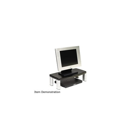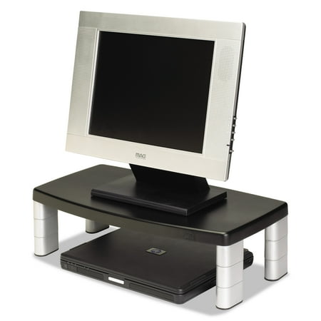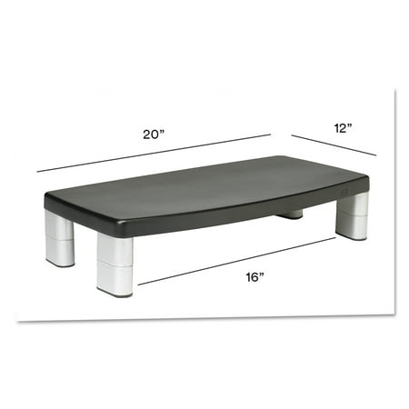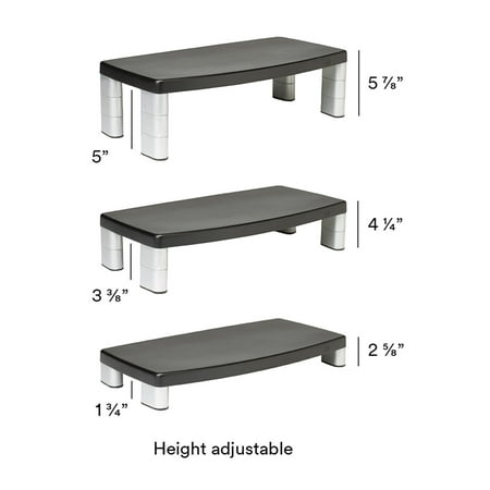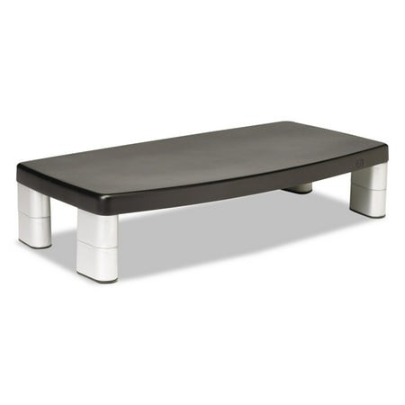 Adjustable monitor stand with nonskid base is designed for laptops, monitors and printers. Stacking columns raise the machine and allow a 16" wide storage space underneath to maximize desk space. The extra-wide monitor raises the monitor from 7/8" to 5-7/8" in increments of 1-5/8" to help ensure the proper viewing angle. It is great for laptops, printers or monitors up to 17" or 40 lb.3M Adjustable Monitor Riser Stand, Black