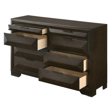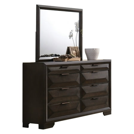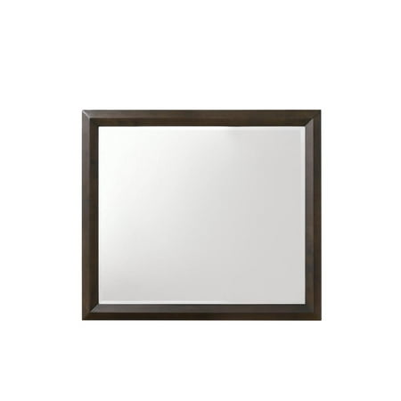 The clean lines and transitional look of the Merveille mirror make it an ideal addition to any bedroom. This rectangular contemporary bedroom mirror features a rich espresso finish frame and beveled edge. Add modern elegance and style to any bedroom with this unique mirror. Dresser sold separately.