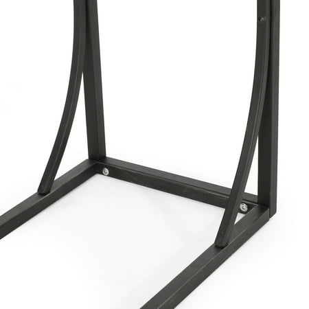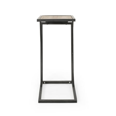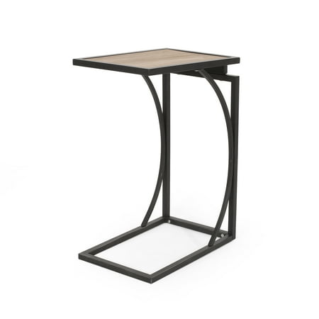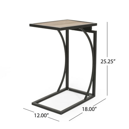 Accent your home with a convenient side table that won’t take up extra space, but will only add to the sophistication of your decor. Our C-shaped table is the perfect companion to any living space with its stunning modern industrial design and sturdy iron frame. With a gorgeous firwood tabletop and elegantly curved accents, this side table brings a refined touch to any sofa. Whether you’re using this in your living room or bedroom, this C-shaped accessory allows you comfortable table space whenever you need. MODERN INDUSTRIAL: Our C-shape table incorporates a powder-coated frame with sleek wooden slats to create an understated modern industrial design. Featuring smooth metal contrasted by natural wood, this side table offers a chic aesthetic to any home. C-SHAPE DESIGN: Perfect for use while seated on the couch or in your favorite club chair, the C-shape design allows you to use our end table without any sacrificing leg room. FIRWOOD: The tabletop is created with refined firwood for a resilient structure that features straight, tight grains. This durable wood less prone to warping or twisting due to its dense nature. IRON FRAME: Constructed of iron, the frame of this end table is made to be incredibly durable, ensuring that this piece will hold up under heavy use. Refined with a smooth matte finish, this table brings an elegant touch to this piece, making it an understated yet chic addition to your home. DIMENSIONS: Choose an accessory that is the perfect size for you and your furniture. This end table is 12.00” W x 18.00” D x 25.25” H. You will love how much your space can transform with the simple addition of this charming table.