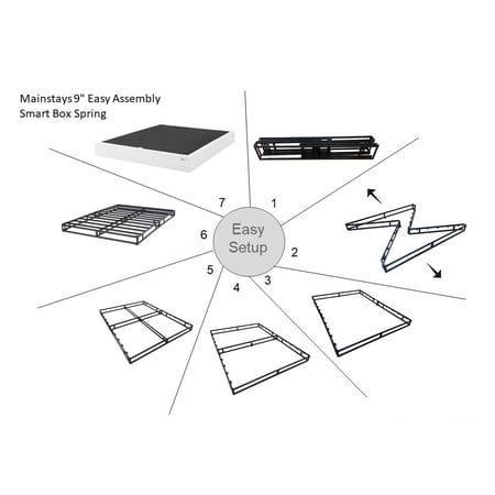 Set yourself up for a great night's sleep with the Mainstays 9" White Jacquard Smart Box Spring. Offers the look and functionality of a traditional box spring but made from steel providing ultra-sturdy support for any innerspring, memory foam or combination mattress, features a 100% polyester jacquard covering that prevents shifting and is machine washable. This innovative box spring is designed to easily fold up for convenient storage and transport when not in use. The Mainstays 9" White Jacquard Smart Box Spring sets up in seconds with no tools required and is available in Twin, Twin XL, Full, Queen, King, and California King sizes to create the perfect sleeping platform in any bedroom.