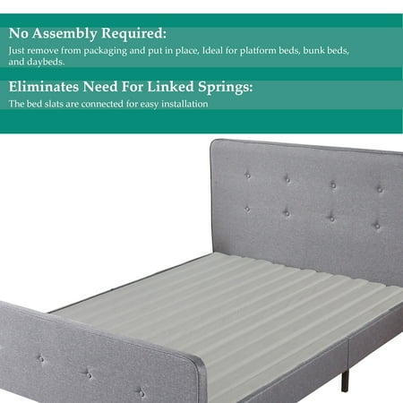The standard wooden slats provides an excellent surface foundation for any platform beds, bunks and daybeds. It adds support to any mattress type and will keep mattress stay in good shape thus extending the life of your mattress The wooden slats made out of Black Spruce wood are linked to prevent movement during use and they effortlessly extend your mattress's life span and prevent sagging It will give a firm Bottom support for the mattress These can be avoided with the use of slats Using slats doubles the mattress' Life expectancy These slats is a good alternative in lieu of a box spring that may be too high for day beds It will give the bed a lift without adding much Height These slats is strong enough to be used directly on bed frame in lieu of a box spring.