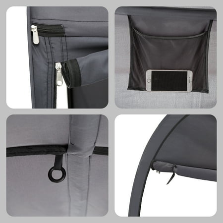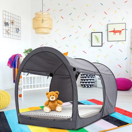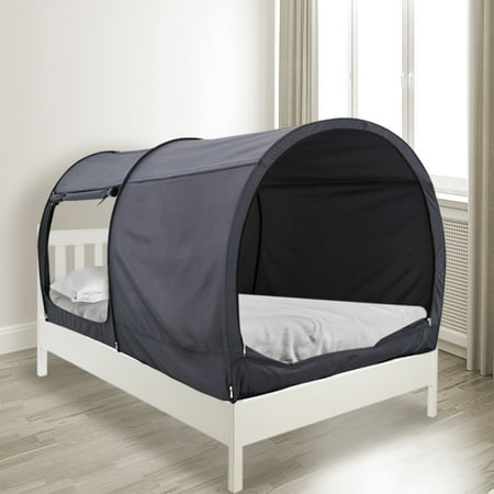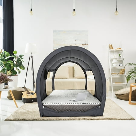 Description: Measures 80 x 60 x 47 inch and fits queen beds. Specially patent pending designed to be used with your existing mattress or can even be used by itself. Durable PVC poles frame is much better than those of steel frame other products , Fiberglass rods makes the bed canopy stay in shape and stable. Mesh windows on the head and foot of the tent provide users with airflow and light. Zip it completely for maximum privacy. High-quality pongee fabric, breathable, soft, lightweight, light blocking, anti-mosquitoes and durable in use. Pop up style allow to set up and take down easy,better than other assembly style products . Folds flat for compact storage, carry bag sized 26 x 26 x 2 inch. Laundry available. Keep your own privacy space in large room like dorms and barracks. By reduced light and noise, this sleeping tent provides you better sleeping at nap time nap time, bedtime, playtime and alone time.