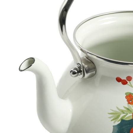 Make a statement on your stove with The Pioneer Woman Cheerful Rose 1.9-Quart Tea Kettle. This colorful kettle performs under pressure and looks great in your kitchen. Enamel on steel construction ensures this kettle is durable, versatile, and colorful for pot after pot of your favorite hot beverage. Perfect for tea lovers with a sense of style, you can mix and match this kettle with other pieces in Ree's collection. Colorful florals pop against a brilliant white finish are eye-catching in any room. A heat resistant handle folds down for easy filling and safer lifting. Featuring a classic rounded body and curved spout, this kettle brings a contemporary flair to a classic design. The Pioneer Woman Cheerful Rose 1.9-Quart Tea Kettle looks great and heats quickly, so tea time can happen any time of day. Bring a bit of the frontier to your home with The Pioneer Woman Cheerful Rose 1.9-Quart Tea Kettle.Meet Ree:Ree Drummond is a NY Times Best Selling Author, TV personality, social media phenom, and the woman behind the popular Pioneer Woman lifestyle blog that started it all. She’s also a lover of butter, basset hounds, Ethel Merman, her hunky, cowboy husband Ladd, and their four kids. Her casual country style and delicious recipes have made her a go-to for all things cooking and entertaining.