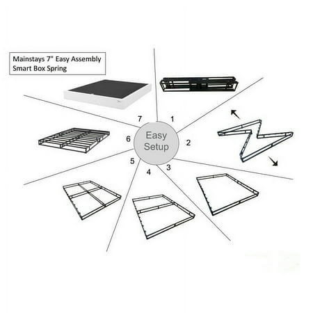 Set yourself up for a great night's sleep with the Mainstays 7" White Smart Box Spring. Offers the look and functionality of a traditional box spring but made from steel, providing ultra-sturdy support for any innerspring, memory foam or combination mattress. Features a 100% polyester jacquard covering that prevents shifting. This innovative box spring is designed to easily fold up for convenient storage and transport when not in use. The Mainstays 7" White Jacquard Smart Box Spring sets up in seconds with no tools required and is available in Twin, Twin XL, Full, Queen, King, and California King sizes to create the perfect sleeping platform in any bedroom.