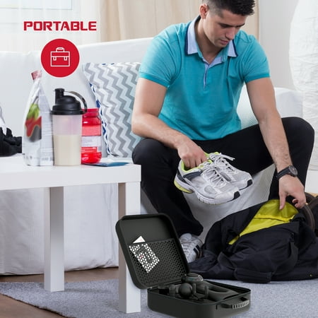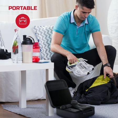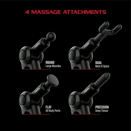 Relieve. Recover. Relax. Boost your muscle recovery after working out and eliminate fatigue and soreness with the FitRx Pro Muscle Massage Gun. This handheld percussion massager is a portable solution for your personal fitness, relaxation, and physical therapy needs. Target specific areas on your body with the four interchangeable massage head attachments. Use them as part of your normal workout or for therapy while healing from injuries. Multi-level vibration frequencies (as well as three separate arm angles) help with long-lasting pain relief, circulation, and the reduction of inflammation in hard-to-reach areas on your back, between shoulder blades, dense leg muscles, and more. This is the ideal massaging solution—whether you sit at a desk all day or are “living the life” as a pro athlete, the FitRx Pro provides a convenient way to promote a healthier body.