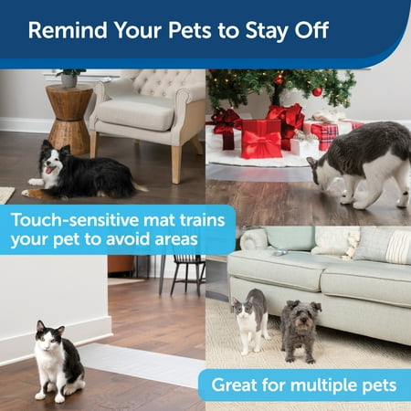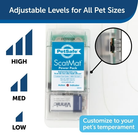 Training your pet should be simple, so PetSafe ScatMat Indoor Pet Training Mat is here to help! With this training mat, teach your cat to notjump on the kitchen counter or your dog to not on your delicate furniture. ScatMat training mats are battery-operated, clear, vinyl and easy to use in all areas of your home. It comes in 5 sizes that are great for countertops, couches and even around your Christmas tree. When your pet steps on the training mat, they will feel a safe yet startling static correction. There are 3 correction levels so you can choose either a low, medium or high setting depending on the temperament of your pet. To help during the training process, a blinking indicator light will let you know how many times your pet has stepped on the ScatMat training mat. With a little training, your pet will learn to stay out of trouble. If you need to protect a larger area in your home, you can purchase ScatMat Extension Mats (sold separately) and connect them to your current ScatMat. PetSafe brand is here to help you and your pet live happy together.