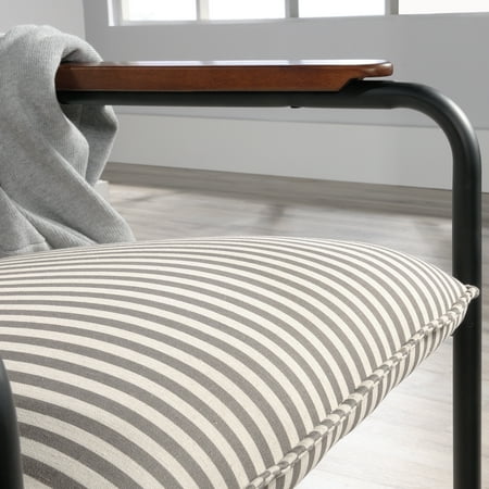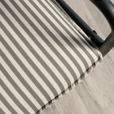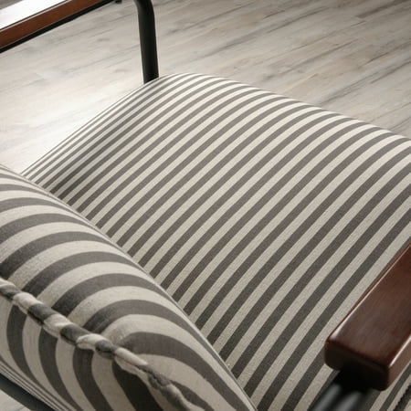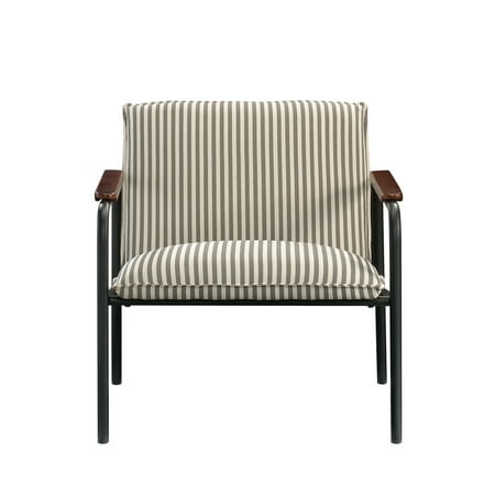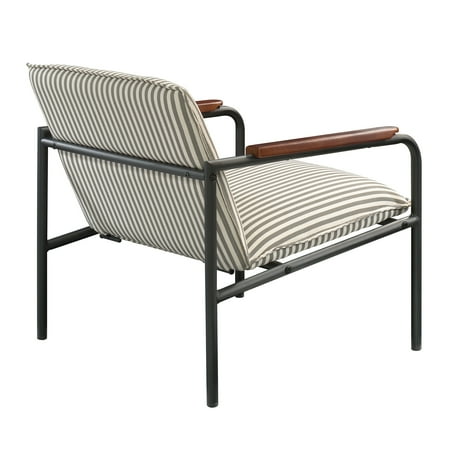 Stylish seating is a must-have in your home. Accentuate your living space by adding charming design and comfort to any room in your home with this chair from the Vista Key collection. This beautiful lounge chair features an upholstered seat and back for comfort you can enjoy while you sit back and scroll on your smartphone or relax while watching the evening news. Its two armrests are accented with wood arm caps for an extra touch of elegant style that is sure to catch the eye of all your guests. Attractive from every angle, this modern inspired accent chair is the perfect accent no matter where it stands in your home ? the living room, the dining room or in your office! With its grey and white pinstripe design paired with a durable, powder coated metal frame, this beauty of a chair gives your home the style you want with the functionality you need.