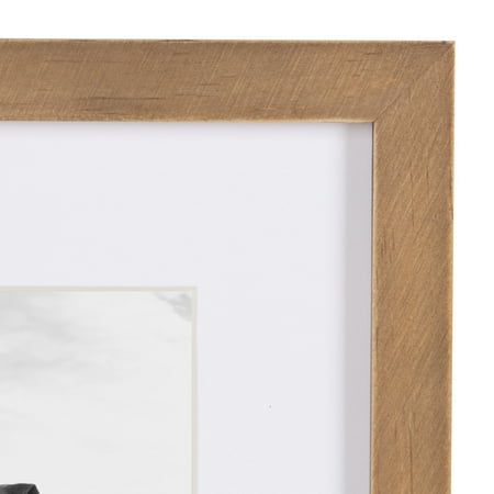 Take it from your favorite home-décor magazine - a cluster of smartly displayed photos all presented in stylish wooden frames is the trend that is becoming a classic. What was once a cluttered arrangement gathering dust becomes the main focal point of any room. Capture your cherished photos of family, friends, and special occasions with the DesignOvation Gallery Wood Frame Set. The traditional look of this rustic finish frame set will add a modern feel. With this frame collection, you can personalize your display of photos to suit your space and style using any customizable layout that you design. The frames can hang portrait or landscape style and can be arranged on a tabletop with the ready-to-use easel on the back or mounted securely on a wall with the metal sawtooth wall hangers that come attached to the back. The white mat creates an additional decoration and brings the viewers focus on what matters - your photos. It's a simple way to create drama or fun in your home or office. The outer frame dimensions are 9x11 inches. Each frame holds one 5x7 photo with the included mat or an 8x10 photo without the mat.