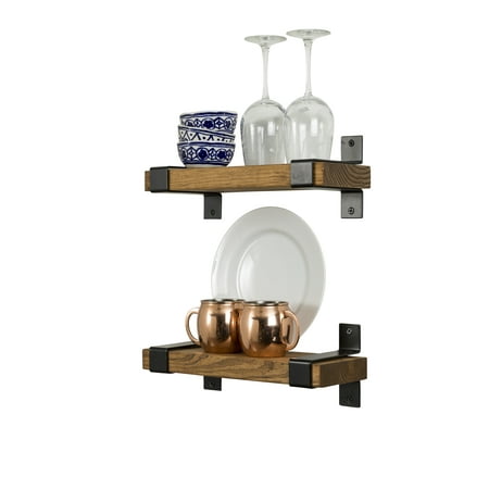 Revitalize your space with these easy-to-install shelves by Del Hutson Designs. The industrial metal urban brackets are made from high-grade steel and the solid wood pine shelves bring great rustic appeal. This set is easily installed and comes with all the necessary hardware for installation. These shelves are the perfect addition to your home, office, kitchen or dorm room for displaying photos, decor, and more. Our commitment lies in a passion for lifestyle+community+handmade. We are decor upcyclers at its best!