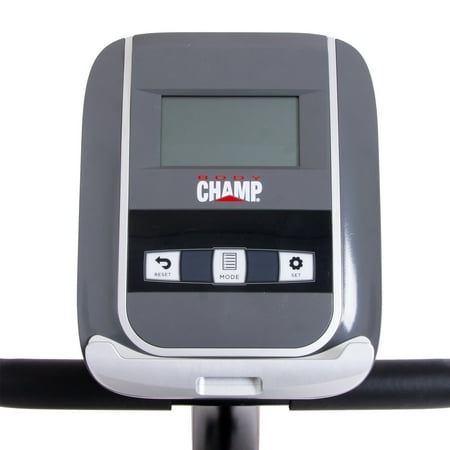 The Body Champ Magnetic Recumbent Bike is a perfect solution for anyone who wants to bring the gym experience into the comfort and convenience of home. It has a compact design that makes it easy to accommodate anywhere in your home and easy to transport. Featuring a walk-through design with and easy to adjust seat slider, the recumbent bike provides comfort through a wide padded seat and backrest. The recumbent bike keeps you motivated with a range of programs and intensity levels all controlled by an LCD display. The Body Champ Recumbent Bike includes a heart rate monitor that is built into its hand grips. The LCD console displays important information such as heart rate, distance, speed, time, calories and resistance level.