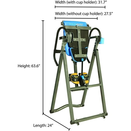 [FOLDAWAY BACKREST]: FOLDAWAY backrest allows you to fold the backrest in half for easy storage. The only folding backrest inversion table on the market with patent pending folding and transportable design. Folded dimensions: 24” L x 31. 7 W x 63. 6” H [4 WHEELS for EASY MOVING] : With included 4 transportation wheels, moving the table around the house become a breeze. NO MORE carrying the table with two person in order to relocate to another room. UL (Underwriter Laboratories) Certified for safety [NO PINCH AIRSOFT ANKLE HOLDER]: Patent pending AIRSOFT ankle holder for UNMATCHED COMFORT. NO PINCH or PAIN on your ankles while inverting. Uses AIRSOFT technology allowing air to flow into different chambers to auto fit your legs and ankles. [SURELOCK RATCHET SYSTEM]: Easy reach "Palm Activated" SURELOCK adjustable ratchet ankle locking system. Double lock ratchet tooth mechanism makes the table more secure and safe when inverting. Solid two piece ratchet design for more security
