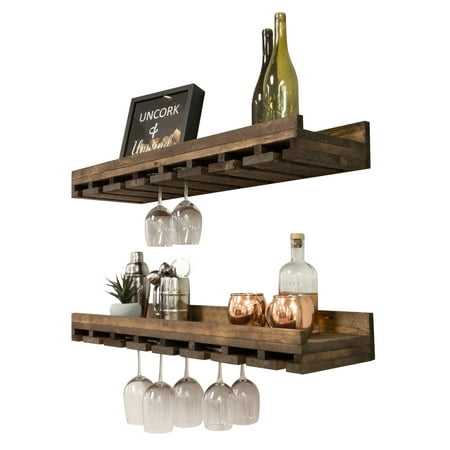 Add rustic style to your space with this set of wine glass shelves by Del Hutson Designs. Perfect for kitchen, dining, and bar areas, each shelf can hold up to 15 stemmed glasses. Each piece is unique with the woods individual marks and characteristics. Adorn the top of the shelves with pictures, decor, wine, and more. Our commitment lies in a passion for lifestyle+community+handmade. We are decor upcyclers at its best!