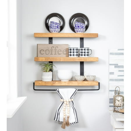 Utilize your walls with this space-saving shelf unit by Del Hutson Designs. These shelves make the perfect stage for displaying decor or adding storage. Featuring three shelves and a towel rack, the unit is ideal for your kitchen, dining, or bath. The shelves are made from real wood with all of the rustic characteristics of the natural elements. Each unit is easily installed with brackets. Our commitment lies in a passion for lifestyle & community & handmade. We are decor up-cyclers at their best!