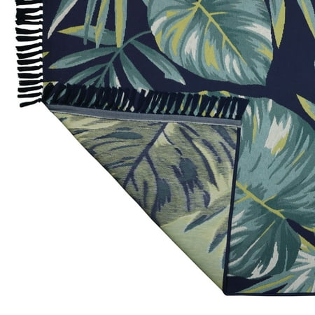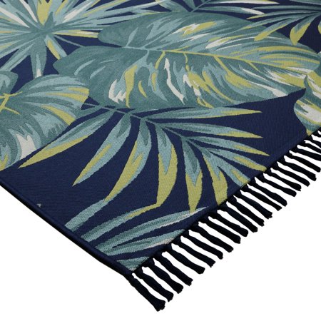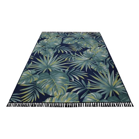 Transform your indoor or outdoor living areas with the Tropical Leaves Tapestry Indoor/Outdoor Area Rug by Better Homes & Gardens. In an updated multi-cool tropical leaf pattern, this rug comes in several sizes to compliment any living space. Made from durable, this rectangle rug is designed to maintain its beauty indoors and out. Great to use on a porch, deck, patio, balcony, sunroom or kitchen and enjoy the Tropical Leaves Tapestry Indoor/Outdoor Area Rug for seasons to come. Comfortable to relax on, yet tough enough for high traffic areas of the home.