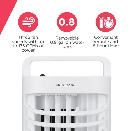 The Frigidaire Compact 2-in-1 Evaporative Cooler (Swamp Cooler) is the ideal air cooler for anyone seeking relief from the hot seasons. The dual-function allows you to add water to the 0.8-gallon tank for evaporative cooling in arid climates, or you can use the 175 CFM tower fan alone to cool your personal space. Either way, you'll enjoy cool breezes and plenty of great features in a small package.