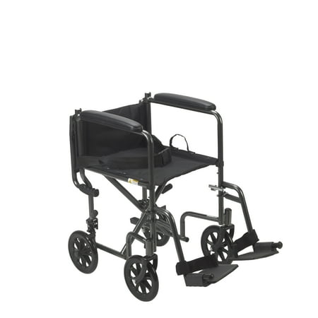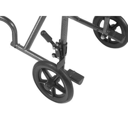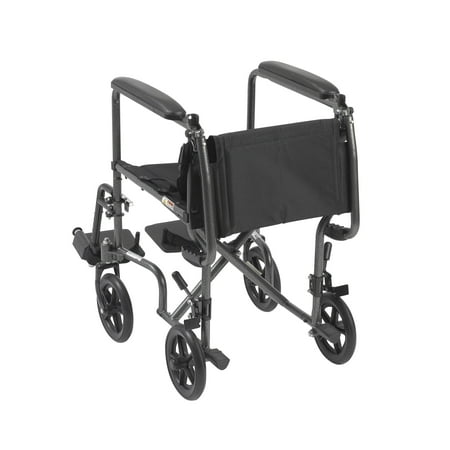 Unbeatable safety, convenience, and reliability the from Drive Medical is everything you want and need in a transport chair. It's the perfect combination of durable, long-lasting value, dependability, and never-ending convenience. Specially designed for users and caregivers alike who need both durability and convenience that comes to you in the form of a steel frame that is forever strong, yet incredibly lightweight and easy to maneuver, this specially built mobile aid is unbeatable. Unlike other traditional transport chairs, this gem lets you glide through home doorways, rooms, and hallways with ease. You'll also appreciate that in addition to its light weight; it also folds up easily and can be moved in and out of your vehicle in a jiffy. The SV steel transport chair comes with a classy and stylish silver finish and is available with a 17" wide seat. For extra convenience, each also comes with footrests that swing away, making it especially easy for users to mount and dismount faster and safer. The attractive nylon upholstery makes this chair easy to clean while the armrests are amply padded to give you maximum comfort and support. Go ahead and Experience the drive difference now!