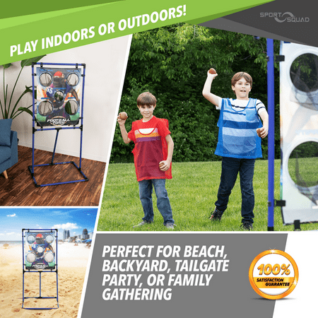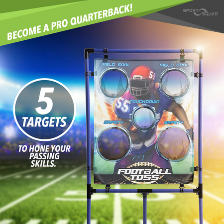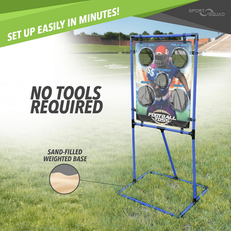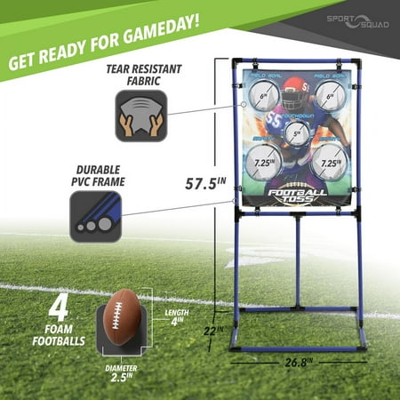 The Sport Squad Football Toss Game Set was made to bring the action of the gridiron to your homegate, tailgate, or any other setting that needs some fun! Durable but lightweight tubing makes this target toss game portable and easy to set up. The competition heats up as players take aim at each of the football targets. With four foam footballs included, the game keeps everyone moving and throwing.