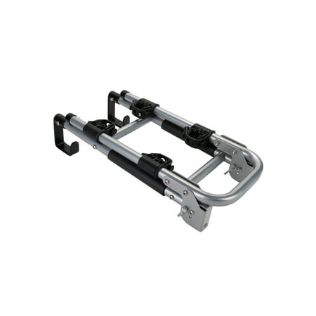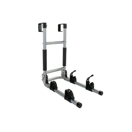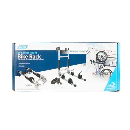 Camco's 51492 RV Ladder Mount Bike Rack for Easy Transport of (2) Bikes easily installs onto standard RV ladders, and holds up to two bikes, with a maximum combined weight rating of 60 lbs. The form fit cradles securely hold your bikes, and the straps provide added security. The Bike Rack has soft grip handles and locking pins to keep it in place. Folds for easy storage.