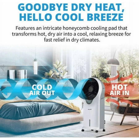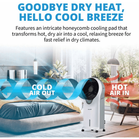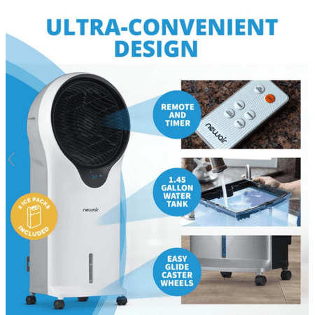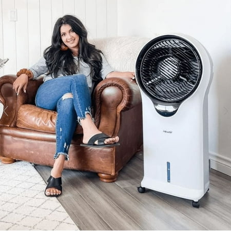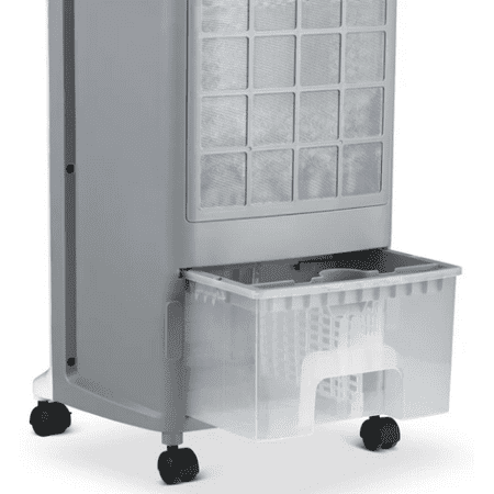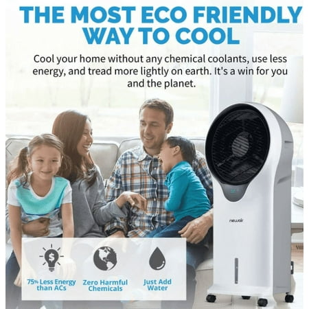 Beat the heat and cut energy costs at the same time with the NewAir Evaporative Cooler. As water evaporates from the honeycomb pads, Cyclone Circulation TM technology provides a unique style of oscillation that boosts the wind chill effect on your skin and circulates cool air efficiently throughout the room for fast results. This portable evaporative cooler is loaded with convenience features, including easy-glide casters and a removable water tank for mess-free refills. The upgraded, contemporary design blends seamlessly with any decor, making this the ideal choice for cooling down your home when you live in an arid climate.
