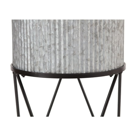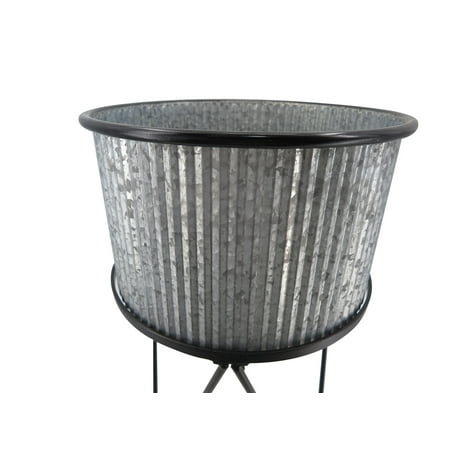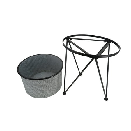 Mainstays Karvel Galvanized Metal Planter with Stand makes a great addition to your home or garden. Durably crafted of 100% iron with a galvanized and black finish. This weather-resistant planter is great for indoor or outdoor use. Easily assembled with the included instruction. This Karvel stands over two feet high and is perfect for your favorite houseplants, flowers, succulents, and more. With its unique style, the planter with stand makes a welcome addition to your sun porch, deck, garden, walkway, or almost any room.