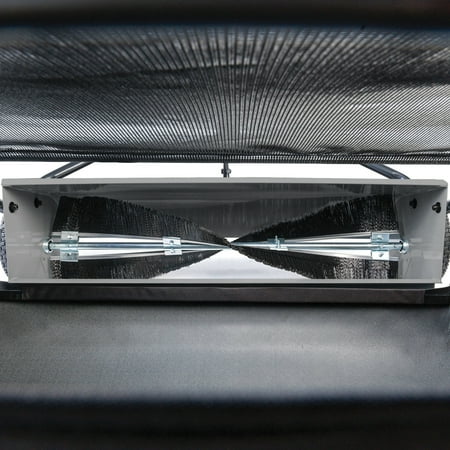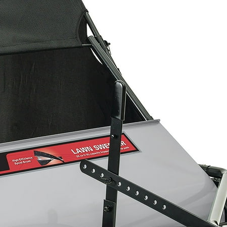 This professional grade Ohio Steel Lawn Sweeper features an extra-large capacity 22 cu. ft. heavy-duty collector bag and a 42 in. sweeping path allowing you to get your lawn care finished quickly. The exclusive patented spiral brush sweeps more efficiently than standard sweepers and puts less stress on gears for longer life. "No-slip" positive lock height adjustment will not vibrate out of position and has easy-to-remember height settings. Hopper empties by pulling rope from the seat of your tractor - just reverse to debris or compost area, pull the rope and you're done! Extra-wide 9 in. chute is less likely to clog, especially when sweeping damp grass clippings that can clump together. 3-position hitch adjustment allows for efficient level operation with any tractor hitch height - without the use of easy to lose spacer rings! The sweeper stands upright and bag folds for compact storage. For over 50 years Ohio Steel has manufactured high-quality, innovative tractor and ATV attachments that help get the job done faster and with less effort. 42 in. sweeping width; 22 cu. ft. capacity hopper 11 in. spiraled polypropylene brushes - an Ohio Steel patented exclusive feature 4.5 to 1 brush to wheel turning ratio 11 in. semi-pneumatic wheels Sealed ball bearings on brush axle Sealed ball bearings on brush axle Gray and black powder-coat finish Hitch pin included 3 year limited warranty