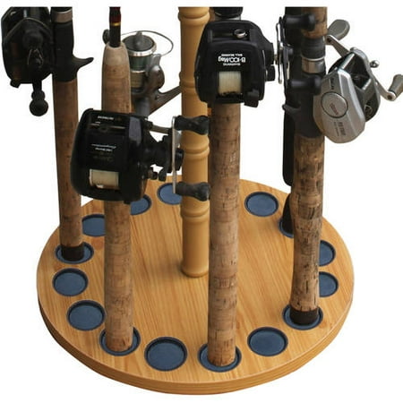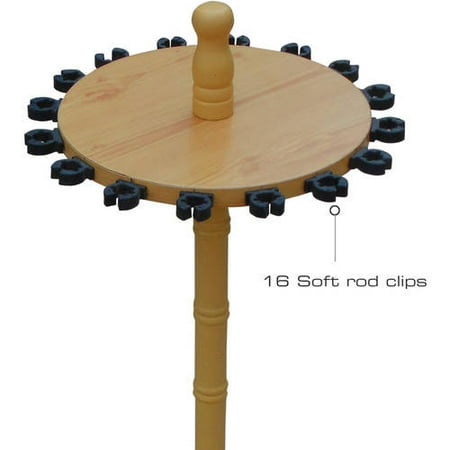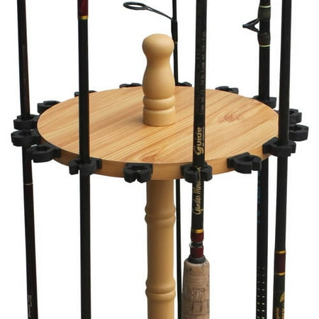 Round 16 Fishing Rod Storage Rack Store your gear with style with the durable Round 16 Fishing Rod Rack from Rush Creek Creations. With a solid wood center post, Freshwater rod clips that adjust to any rod taper, waterproof handle guides on the base plate, this fits any angler's needs. Properly secure your rods with the padded base plate slots and soft rod clips. After a long day on the water, this rod rack will be exactly what your favorite gear needs.