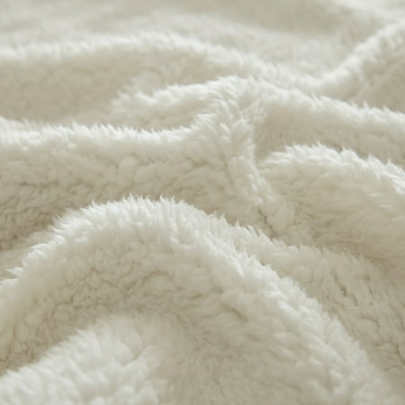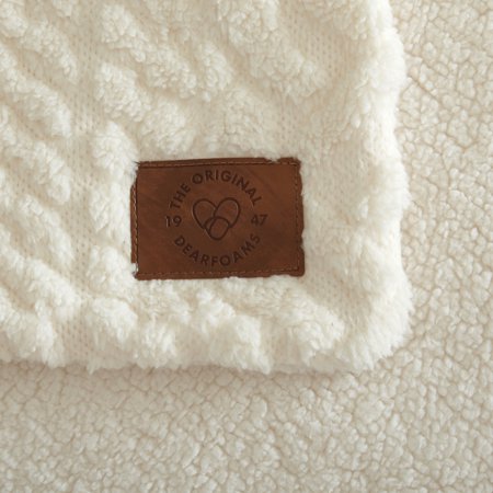 Cuddle up on those chilly nights with the super soft Dearfoams Ivory Embossed Sherpa with Solid Sherpa Reverse Throw! The Dearfoams Ivory Embossed Sherpa with Solid Sherpa reverse lends additional warmth that makes these the perfect throw blanket to snuggle up with. The Dearfoams Ivory Embossed Sherpa with Solid Sherpa Reverse Throw is made of soft embossed polyester Sherpa that reverses to luxurious polyester Sherpa material. The Dearfoams Reversible Throws are available in a variety of styles such as Wide Wale Plush, Embossed Sherpa, Buffalo Plaid, Stripe and Red Plaid that will coordinate with most home decor. With the Dearfoams Ivory Embossed Sherpa with Solid Sherpa Reverse Throw, you can add a fun layer to your bedding or drape one over a chair to add a cozy feel to your living room. Each throw is sized at 50" x 60" to deliver insulating warmth and maximum comfort. The Dearfoams Ivory Embossed Sherpa with Solid Sherpa Reverse Throw is machine washable for easy care.