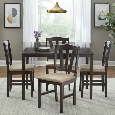 Create memories while sharing a meal with the Metropolitan 5-Piece Dining Set. It includes four matching upholstered chairs and a rectangular table that features clean lines for a charming yet contemporary appearance. This Metropolitan dining set is available in multiple colors, including black, espresso and white to best suit the look and decor of the space. Use it to complete any kitchen or dining room. The rectangle dining table set is made of a combination of rubber wood, micro fabric fiber and foam for durability and comfort. Whether gathering around for a chat with friends or putting out plates for a full dinner, this set will bring comfort and versatility to a convenient furniture option. Enjoy a meal, a drink or conversation with the Metropolitan 5-Piece Dining Set.