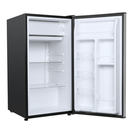 Enjoy the convenience of having your favorite chilled food, drinks, or snacks whenever you want with the Galanz 3.3 cu ft One Door Mini Fridge in stainless steel look. The Galanz 3.3 cu ft One Door Mini Fridge is an ideal size for the dorm room, game room, exercise room, office, garage, bedroom, or any other living space. The Galanz 3.3 cu ft One Door Mini Fridge features a full-width freezer compartment with a door that is ideal for ice and frozen food storage. The convenient reversible door allows you to choose to open from the left or right side making the Galanz 3.3 cu ft One Door Mini Fridge suitable for any layout.