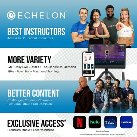 Pedal your way to new heights: The all new Connect EX3 has all the great features of the original Connect bike with new advanced technologies. New and improved stabilization handles and seat post adjustments including a competition seat with 6' lever-style adjustment, 2. 4-volt advanced device charging Usb, and a precision resistance motor are just a few of the exciting new features you only get with the EX3. Efficient, Compact And Powerful: The Echelon Smart Connect Bike EX3 is designed with thirty-two resistance levels with new indexing resistance adjustment and easy to use resistance knob, this smart exercise bike stays in one place as you pedal, but it'll take your at-home workout to new heights. This bike is designed for anyone and every home. With a modern design and a footprint of just 3ft 5in x 1ft 10in, the Connect Bike provides a high intensive work out without taking over your space. Beginning April 1, 2022, enjoy a free 30-day trial of Echelon Premier Membership with access to 40+ daily live and 15,000+ on-demand connected fitness classes led by the world's best instructors through the Echelon Fit®️ App. Enjoy exclusive content, class playlists, and better music from top record labels, including your favorite hits from artists like Pitbull, Old Dominion, Lady Gaga, Jessie J., Daddy Yankee, and more. Classes range from 5 to 45 minutes and are designed for everyone from beginner to pro athletes. Explore classes like Cycling, Rowing, Running, HIIT, Kickboxing, Strength Training, Yoga, Pilates, and more. One membership allows up to five users, so your friends and family can enjoy the Echelon experience together.