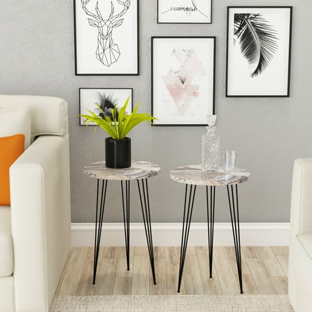 IDEAL SIZE FOR SMALL SPACES: Fits in your space, Fits in your budget. The perfect size and height is ideal for sofa, chair, bedside as end table, night stand, side table, coffee table and tea table, indoor and outdoor. They are practical side tables for the additional need of storage and display. Lightweight design and ideal size, easy to move and carry, this coffee tea side table can be used indoor or outdoor. 22.5" height with 13.8" diameter (57cm height with 35cm diameter). HIGH QUALITY & MODERN DESIGN: Strong and sturdy small tables are made of high-quality wood material and metal legs. Pine Wood end tables have elegant look, durable performance, affordable and non-toxic function. Supports up to 150lb. Anti-slip plastic pad on the bottom of coffee table legs makes it more stable and prevent scratches to the floor. Round design can be placed in corners to save space. Rounded edge design can prevent potential damage and injuries. MULTI FUNCTION: Portable space saving end tables can be used as functional side table, sofa table, couch table, accent table, coffee table, tea table, plant stand, speaker stands, reading table, corner table in living room dining room and balcony, lamp table, bed side table, 2 (two) night stands for bedrooms. EASY ASSEMBLY & CLEAN: Easy to assemble in a few minutes, including all hardware components and instructions. You can easily clean with cleaning cloth the smooth and waterproof surface. BUY WITH CONFIDENCE: Designed and manufactured by PAK FURNITURE. The trusted source for stylish furniture for every budget. We offer 1 month money back guarantee. If you are not satisfied for any reason you can return it for a full refund, and you will have nothing to lose.
