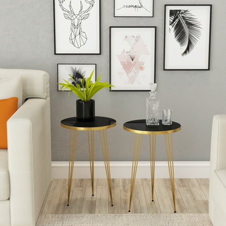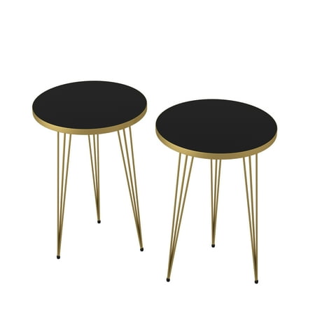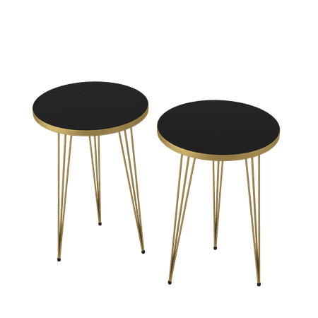 IDEAL SIZE FOR SMALL SPACES: Fits in your space, Fits in your budget. The perfect size and height are ideal for sofa, chair, bedside as end table, night stand, side table, coffee table and tea table, indoor and outdoor. Practical for the additional need of storage and display. Lightweight design and ideal size, easy to move and carry. Set of 2 Side End TableNesting Tables Dimensions: 15” diameter x 22.5” height HIGH QUALITY & MODERN DESIGN: Strong and sturdy small tables are made of high-quality wood material and metal legs. Black Round Stacking Nesting Tables have elegant high gloss look, durable performance, affordable and non-toxic function. Supports up to 150lb. Anti-slip plastic pad on the bottom of coffee table legs makes it more stable and prevent scratches to the floor. Round design can be placed in corners to save space. Rounded edge design can prevent potential damage and injuries. MULTI FUNCTION: Portable space saving nesting stacking tables can be used as functional side table, sofa table, couch table, accent table, coffee table, tea table, plant stand, speaker stands, reading table, corner table in living room dining room and balcony, lamp table, bed side table, stands for living rooms and bedrooms. EASY ASSEMBLY & CLEAN: Easy to assemble in a few minutes, including all hardware components and instructions. You can easily clean with cleaning cloth the smooth and waterproof surface. BUY WITH CONFIDENCE: Designed and manufactured by PAK HOME. The trusted source for stylish furniture for every budget. We offer 1 month money back guarantee. If you are not satisfied for any reasons you can return it for a full refund, and you will have nothing to lose.