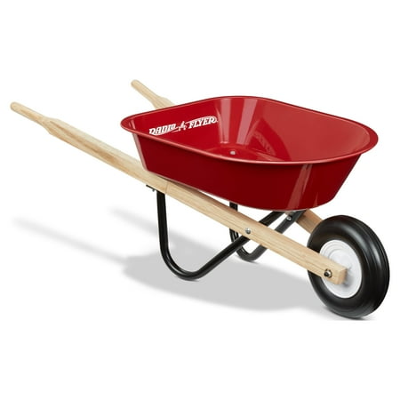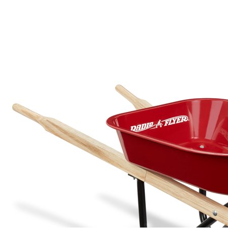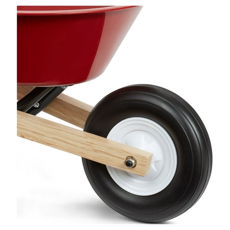 The Kid’s Wheelbarrow by Radio Flyer is as functional as it is fun! The seamless steel red tray with no-scratch edges and wooden handles make this the perfect wheelbarrow for little ones to haul their toys or help with chores in the yard. Great for beginner gardeners looking to help in the yard! The steel undercarriage provides strength and durability and the molded wheel makes this easy to push. Recommended for ages 3+ years.