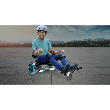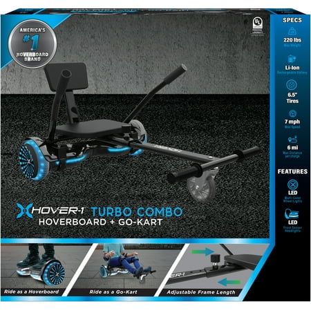 When you're looking for a new type of ride, give our Hover-1 turbo combo in black a try. The turbo combo is the latest mobility solution from Hover-1. This powerful hoverboard buddy features hand-operated rear wheel controls, an adjustable frame length, and a simple attachment system to connect it to your hoverboard with ease. The infinity wheels and tires change color automatically and with two 200 W motors, this hoverboard's fun won't either. Make sure everyone sees you coming with this stunner of a hoverboard. The Hover-1 turbo combo will completely transform your hoverboard experience.