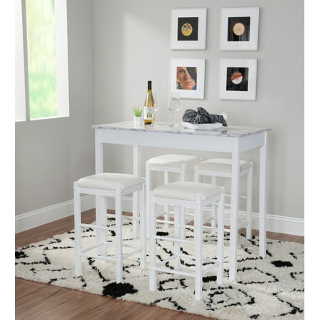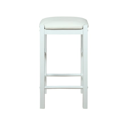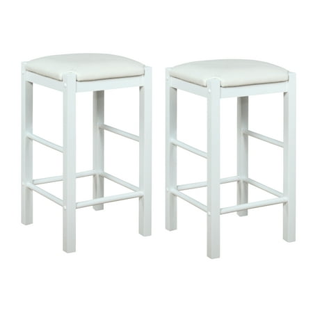 Versatile, space saving two pack set of backless counter height stools can add comfortable seating to any gathering height table or kitchen counter. Featuring padded black faux leather upholstered seat. Each made with solid woods in espresso and designed to match it’s companion tavern table set. Purchase includes two stools.