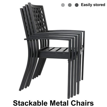 PHI VILLA 2 Piece Patio Wrought Iron Chair Outdoor Dining Set with Armrest - Supports 300 LBS