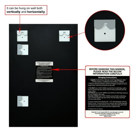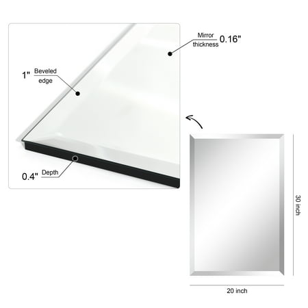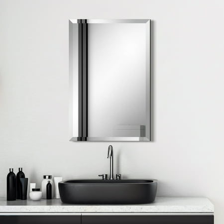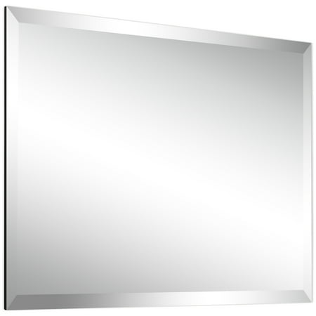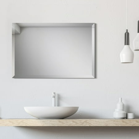 This piece is all mirror. No frame, no decoration, no finishes. Just its simple, beautiful self. It is a rectangle with a simple beveled edge. Alone or in multiples, the Frameless Mirror is a perfect accent piece for an entryway, bathroom, bedroom or any room in your home. Hangers are affixed to the back of the mirror so it is ready to hang right out of the box in either a horizontal or vertical orientation.