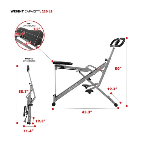 Develop strength, speed, and leanness with the Sunny Health & Fitness NO. 077S Row-N-Ride™ Home Squat Machine. Strengthen not only your lower body but your shoulders, arms, and back. This exerciser promotes compound movement (two or more muscle groups working cohesively). Activating groups of muscles together require more strength, so you'll burn more calories. Compound exercises bring compounded results! With 3 adjustable resistance bands, intensify your workout by adding or subtracting bands - each band adds approximately 22 pounds of resistance!
