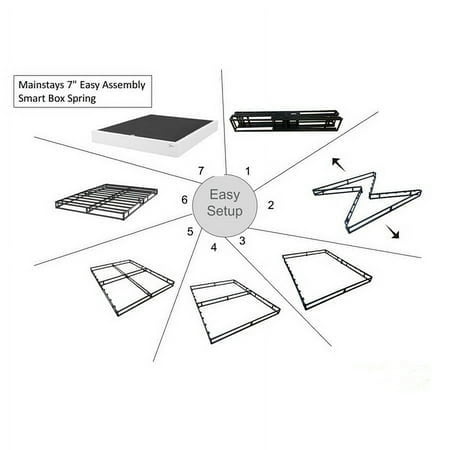 Set yourself up for a great night's sleep with the Mainstays 7" Smart Box Spring. Offers the look and functionality of a traditional box spring but made from steel providing ultra-sturdy support for any mattress, features a 100% polyester jacquard covering that prevents shifting. This innovative box spring is designed to easily fold up for convenient storage and transport when not in use. The Mainstays 7" Smart Box Spring sets up in seconds with no tools required and is available in Twin, Twin XL, Full, Queen, King, and California King sizes to create the perfect sleeping platform in any bedroom.