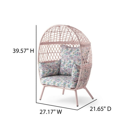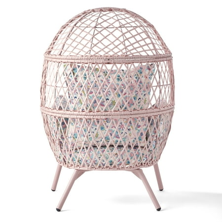 Give your little ones a stylish place to sit all their own with the Better Homes & Gardens Ventura Stationary Outdoor Kid's Egg Chair. Adding a comfortable seating option to almost any outdoor area, the chair is designed with attractive wicker accents and offers deep seating on durable solution dyed 100% polyester cover loose pillow cushions. These cushions attach with ties to make them easy to remove for cleaning as needed. Rust-resistant finished legs create the perfect spot for kids to enjoy the weather, reading, playing games, and more. The Better Homes & Gardens Ventura Stationary Outdoor Kid's Egg Chair is available in Neutral, Pink, and gray and is just one part of the Better Homes & Gardens Ventura Outdoor furniture collection (other items sold separately).