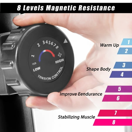 Enjoy a full-Body efficient workout from the comfort of your home with Euroco brand elliptical machine. Designed with you in mind, there are 8 levels of resistance for a perfectly balanced, low impact workout every time. Using the easily accessible console you can effortlessly track your progress and ensure peak efficiency no matter what training regiment you are on. Featuring anti-Slip pedals and smooth, silent handle bars this elliptical machine is not only a fantastic workout experience, it is also quiet to ensure you won't bother your family or neighbors. Run free with Euroco brand today.