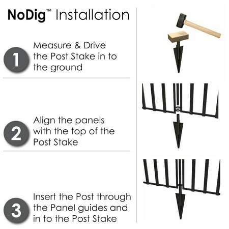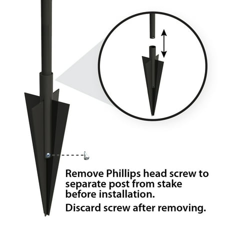 The Yardlink Black Multi-Style Post and Stake is an innovative, patented no dig fence post. The post allows you to install the Yardlink semi-permanent fencing systems without the hassle of digging holes and pouring concrete. The post is constructed of powder-coated steel, which helps to prevent chipping, rust and withstand time and weather, so your fence will last for years to come. The fencing system is quick, easy, and painless to install. No digging or concrete is required for installation. To install, simply drive stake post unit into ground using a weighted mallet or sledge hammer and join panels and gate together by passing the posts through the eyelets. Complete your next home fencing project with the Yardlink semi-permanent no dig fencing system. Compatible with the Yardlink Chain Link, Steel, Vinyl, and Wood fencing systems.