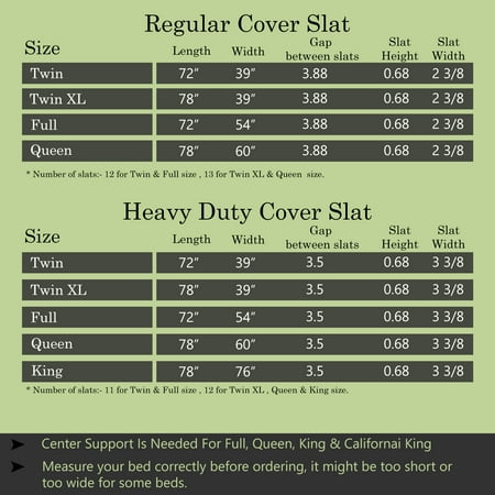 Looking for slats to replace your old ones? our 0.75” Heavy Duty Mattress Support Wooden Bunkie Board/Slat With Cover by Continental Sleep. The slats are an excellent surface foundation to replace old ones or just to give your bed frame support for the mattress. The equidistant slats provide your mattress optimum support and ventilation. This will reduce your time spent on airing your mattress. The solid black spruce wood slats are eco-friendly for your sustainable lifestyle. The extremely durable product allows a noise free utilization and absorbs stress. slats are linked for an easy installation; no assembly is needed! Just measure your bed frame before purchasing to get the right fit for your bed frame. We have two variables Standard and Heavy Duty.