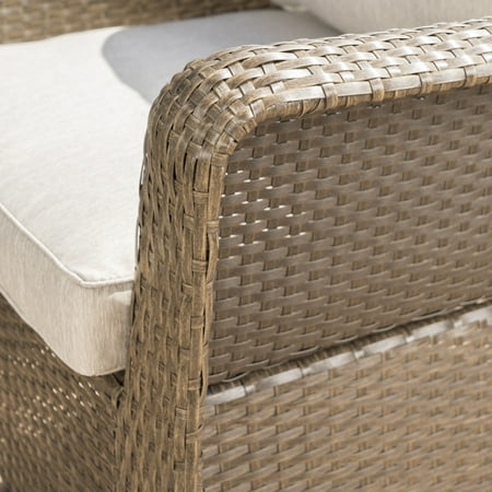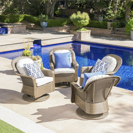 This four-piece club chair set has everything you'd want from your outdoor furniture - ultimate comfort, unsurpassed functionality, and extreme durability. Set on swivels to ensure that you and your guests will always be facing in the direction of the most beautiful sights, this chair is made from the highest quality rattan and iron construction.