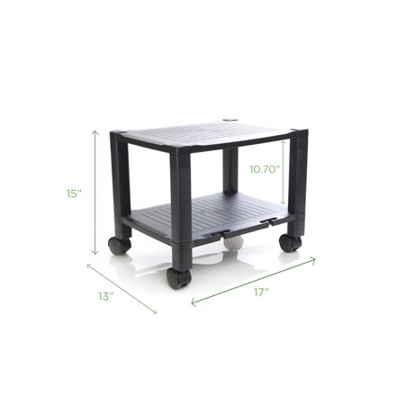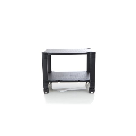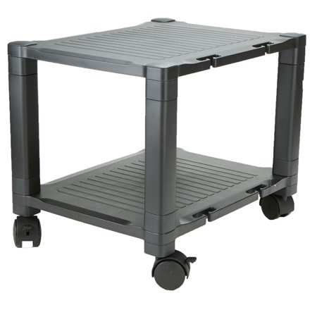 It's a height-adjustable, two-tier cart with wheels! This Mind Reader Adjustable Rolling Cart is not like other wheeled carts. The height is adjustable! So, you can go from a tall two-tier printer stand to a low-profile printer stand in a matter of seconds. At full length, this product is 24.4 inches high at three tiers and 15 inches high when compressed to two tiers. This product can hold most printers up to 75 pounds. So it's perfect as a printer table for small spaces or a printer stand under your desk. You can place the cart as an extension of your desk, between cubicle spaces or you can collapse it to go under your desk and out of sight! You'll also keep your printer cables tangle-free as each tier comes with a cable management or cord management feature. So, no unsightly mess of cords! This Mind Reader Adjustable Rolling Cart has so many uses! Make it a printer cart for your office printer or home office printer. Use the bottom tier to store printer paper and cut down on those trips to the supply room. It's also great as an AV cart or even a projector cart. You can load it with a small computer, monitor, and more! Whatever you use it for, the two tiers of storage are definitely space-savers. Keep all your items easy to find on one tidy cart. There's also a drawer for extra storage! Great for keeping stationery items like pens, paper clips, binder clips, or extra staples handy. And transporting these items from room to room is a breeze with the Mind Reader Adjustable Rolling Cart. Don't break your back. Just stack them onto the cart and go! Made of durable plastic, it's built to last and easy to clean. To top it off, this item needs no tools! It's a quick assembly and then it's ready to use! The Mind Reader Adjustable Rolling Cart is exactly what you have been looking for! Get one today!.