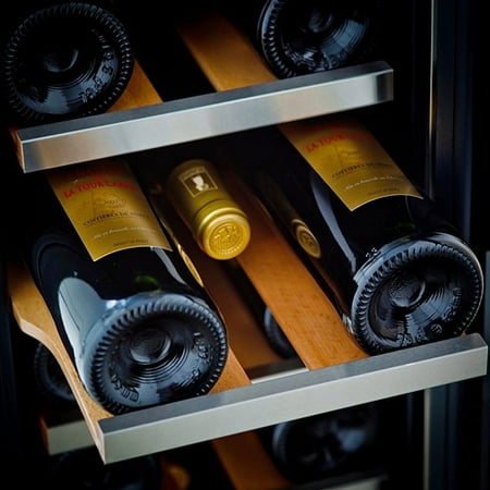 The Whynter BWR-18SD 18-Bottle Built-In Wine Refrigerator offers premium quality and innovative design ideal for your collecting needs. Whether for the enthusiast or the connoisseur, it provides affordable yet advanced wine storage functionality. This Whynter wine refrigerator can hold up to 19 standard 750ml wine bottles. The powerful compressor cooling system offers optimum temperature (high 30ºF to mid 60ºF) for red, white and sparkling wines. The front ventilation design of this unit allows for flush with cabinet undercounter installation or freestanding usage. This 18-bottle wine refrigerator features an exclusive stainless steel trimmed door and a L-bar handle. The six removable stainless steel trimmed wood racks in the unit allow for maximum storage capacity.