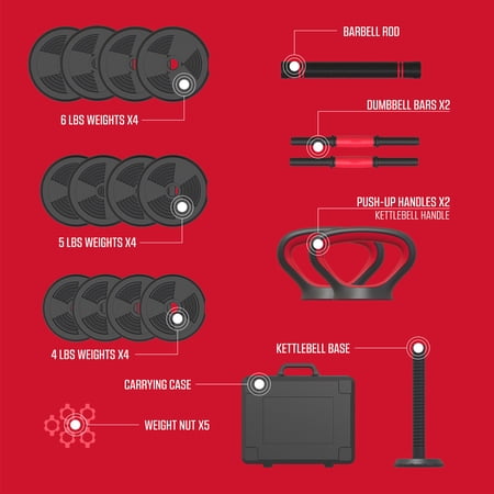 Get started on your strength training or journey to a fitter you with the FitRx SmartBell Gym. Four constructible pieces of workout equipment and twelve different weights all in one portable package. This hybrid set can be used as a barbell, kettlebell, plus a set of dumbbells or push-up handles. With up to 60lbs of weight, you can tailor your workouts to your fitness goals. Its sleek space-saving design makes it easy to store in your home gym or wherever you work out. Whether your goal is light toning, beginner strength training or advanced level weightlifting the FitRx SmartBell Gym was created with you in mind.