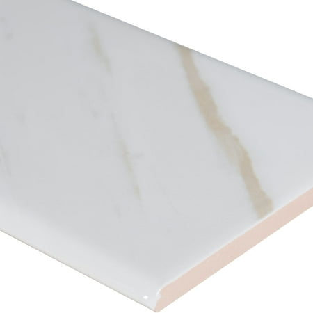 MSI's 4 in. x 16 in. Classique White Calacatta Bullnose Tile features a brilliant white background accented with veins of gray and gold. Inkjet-printed to resemble the fashionable look of natural marble, this bullnose tile matches effortlessly with White Calacatta 4 in. x 16 in. Subway Tiles. It puts the finishing touch on feature walls, backsplashes, shower surrounds and other vertical installations in homes and light-commercial settings. Whether you're planning a remodel or building a new house, choose this marble-look bullnose tile for affordable luxury. This is a rectified tile, mechanically finished on all sides to achieve uniformity. Its precise sizing allows for a thinner joint, which results in a clean, professional install and reduces staining issues.