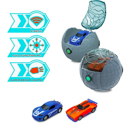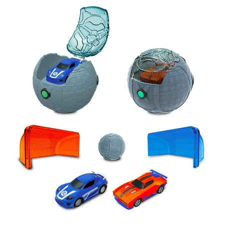 Rocket League Micro RC Battle Pack. Introducing the Rocket League® Micro RC Competition Pack. Full-function remote control replica vehicles, modeled with realistic game-inspired features such as lights and quick acceleration. This awesome competition pack includes two 2.75” 2.4Ghz micro RC vehicles. The item features 2 game replica vehicles with working headlights and taillights, 2 goals, 1 game ball and 2 game ball controllers that also store and charge the vehicles. Now your child can take your favorite Rocket League® vehicles out of the screen and into your hands! Appropriate for ages 5 and up.